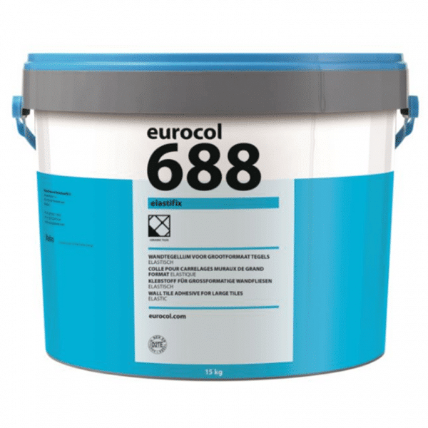 Elastische pastategellijm voor het verlijmen van grootformaat en zware tegels op wanden. Voor het verlijmen van: •zware tegels •grootformaat tegels •wandtegels •DHG-tegels •mozaïek •natuursteen •bouw- en isolatieplaten. NB. Lichtgekleurd natuursteen en glasmozaïek verlijmen met 681 Marmercol of 711 Uniflex. Op nagenoeg alle wanden, zoals: •cementgebonden ondergronden •gipsgebonden ondergronden •diverse plaatmaterialen Verwerkingstemperatuur Vanaf 0° tot 25° C (temperatuur van zowel de omgeving als de ondergrond). Wachttijd Gezien de zeer hoge aanvangskleefkracht kunnen zware en/of grootformaat tegels zonder wachttijd worden verlijmd. Open tijd Binnen 15-20 minuten de tegels in het lijmbed plaatsen, afhankelijk van temperatuur, relatieve luchtvochtigheid, ondergrond en type tegel. Afbindtijd Minimaal 24 uur. Bij het verlijmen van DHG-, gres- en grootformaat tegels minimaal 48 uur aanhouden. Afbinding en het bereiken van de eindsterkte van de lijm zijn geheel afhankelijk van de temperatuur, relatieve luchtvochtigheid, ondergrond en type tegel. Opslag Vorstvrij opslaan. Beschermen tegen temperaturen > 35° C. Houdbaarheid 12 Maanden, in onaangebroken verpakking. Geopende verpakking na gebruik goed sluiten. Ondergrond: •688 Elastifix is geschikt voor vrijwel alle wanden, welke schoon, stof- en vetvrij, vlak en droog zijn, overeenkomstig de eisen, zoals aangegeven in DIN 18 352. •Steenachtige wanden eventueel uitvlakken met 659 Wandolite, 658 Wandoforte of 957 Wandoquick. •Vochtabsorberende en enigszins afzandende wanden voorstrijken met 099 Dispersieprimer. •Gesloten ondergronden, zoals bestaand tegelwerk voorzetten met de te gebruiken pastategellijm of voorstrijken met 051 Europrimer Quartz. •Gipspleister dient, conform de voorschriften van de fabrikanten van gipspleisters, een laagdikte van minimaal 10 mm te hebben. •Voor het afbinden van de lijm is het noodzakelijk dat de tegel en/of de ondergrond vocht kan opnemen. •Ondergronden dienen geschikt te zijn voor de beoogde toepassing. •Raadpleeg vooraf altijd onze technische productinformatiebladen. Bij twijfel over de te maken toepassingen vooraf contact opnemen met onze afdeling Technische Adviezen. Gebruiksaanwijzing: •De lijm op de wand aanbrengen en rillen vormen met de voorgeschreven lijmkam (zie verbruik/vertanding). •De tegels met een schuivende beweging direct in het lijmbed plaatsen. Op gesloten ondergronden de lijm 10-15 minuten laten “aantrekken”, alvorens de tegels te plaatsen. •Na droging van de lijm (minimaal 24-48 uur) afvoegen met een Eurocol voegproduct. •Gereedschap en handen direct met water reinigen. Verzendeenheid: Emmer à 15 kg. Pallet à 44 stuks. Verbruik/vertanding pastategellijmen: De vlakheid van de ondergrond en type tegel zijn bepalend voor de keuze van de vertanding van de lijmkam. Voor binnenwanden is een minimum lijmcontactvlak van 60% vereist (gelijkmatig verdeeld over de achterzijde van de tegel). Vertanding nr. 19 Verbruik ca. 1,8 kg/m² Vertanding nr. 12 Verbruik ca. 2,5 kg/m² •bestaand tegelwerk.