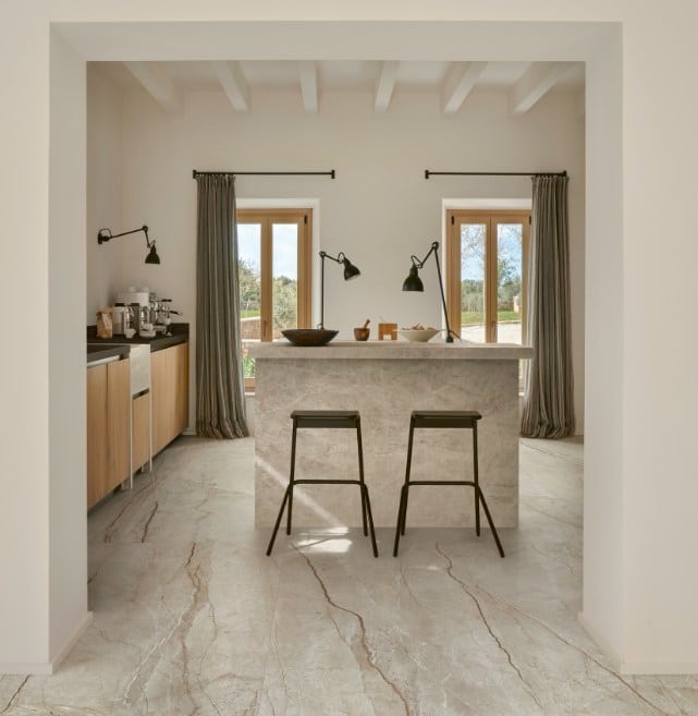 Marazzi Mystone Silver Root Beige MPFJ 120×120 XXL marmerlook tegels. De trend van dit moment! De tegels zijn mat naturale uitgevoerd en gerectificeerd voor het verwerken met een smalle voeg vanaf 2 mm. De natuursteenlook vloertegels zijn geschikt voor vloer en wand en geven door het grootformaat een exclusieve uitstraling.
