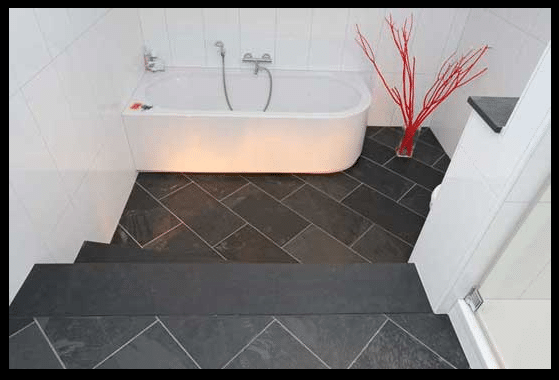 Advies verwerking Braziliaanse leisteen. Door vermindering van de dikte van ca. 20 mm tot ca. 10 mm, veranderen de specifieke eigenschappen van genoemde materialen en daardoor ook de verwerking ervan. Daarom adviseren wij dit materiaal enkel te verlijmen. Eenvoudig gesteld wordt de onderzijde van de steen (onder invloed van het alkalisch aanmaakwater van lijm en mortel) groter dan de bovenzijde en kan daardoor gaan schotelen. Onderstaand volgt een advies van hoe met de geschetse problematiek om te gaan. Bijzonder gevoelig voor vervorming zijn meestal donkere gesteenten van het type sediment- of metamorfgesteente, omdat deze gesteenten de mineralen Serpetinide en Chloride bevatten, die beiden sterk kunnen uitzetten. Vanwege deze risico’s moet de toe te passen lijm aan de volgende voorwaarden voldoen: * snelle opbouw van de hechting * snelle mechanische krachtopbouw (hechtsterkte) * gecontroleerde waterhuishouding tijdens en na het leggen * lage alkaliteit, geringe inwerking op de achterzijde van de tegels * beperking van de capillaire wateropname van de tegels * maximale kristallijne waterbinding (water gebonden door de cement) * hoge flexibiliteit De leisteen dient een aantal dagen te acclimatiseren in de te verlijmen ruimte. Zorg voor voldoende ventilatie tussen de leisteen door deze van elkaar te plaatsen m.b.v. bijv. houtjes. Algemeen voorstel verlijming Braziliaanse leisteen in grotere afmetingen en een dikte van 10 en 15 mm: * ondergrond grondig reinigen en stofvrij maken * leisteen tegels aan de te verlijmen zijde grondig reinigen o.a. van eventueel zaagstof, ongerechtigheden van het calibreren en in het gebouw laten acclimatiseren * tegelverlijming volgens de buttering-floating methode te verlijmen. wellen, zodanig dat er geen holle ruimten waarneembaar zijn (controleren).