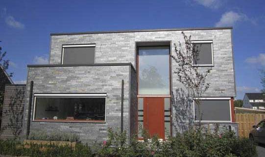 In overleg met de bewoners en aannemer is er voor deze woning Silver Grey natuursteen muurstrips op maat gemaakt.