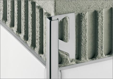 Schlüter-QUADEC is een hoogwaardig afsluitprofiel uit roestvast staal voor uitwendige hoeken in wandbetegeling en biedt een goede randbescherming. Het zichtbare oppervlak van het profiel vormt een rechthoekige buitenhoek voor de tegelbekleding.