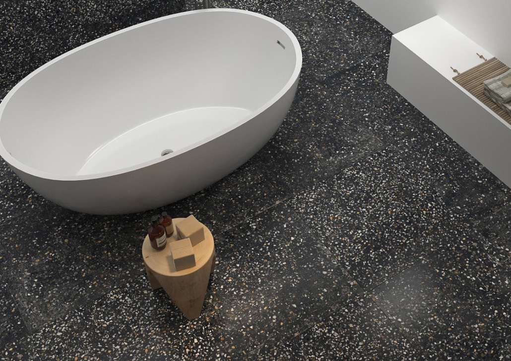 Geef uw project een bijzondere uitstraling en kies voor Sphinx Terrazzo Black tegels. Een top serie uit het uitgebreide assortiment van Sphinx, die zich onderscheidt door kwaliteit en duurzaamheid. De vloertegels zijn niet alleen visueel aantrekkelijk, maar ook keihard en slijtvast, waardoor ze de perfecte basis vormen voor ieder project. Dankzij het stapvaste oppervlak (R10A) zijn ze bijzonder geschikt voor gebruik in de badkamer op de vloer en tevens geschikt voor de wand.