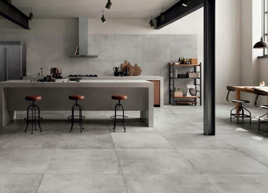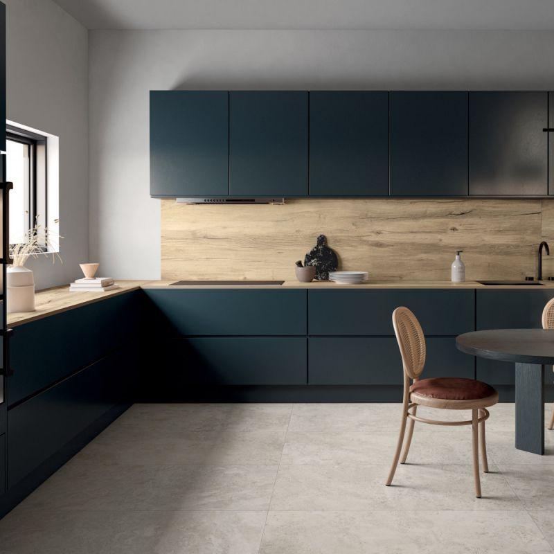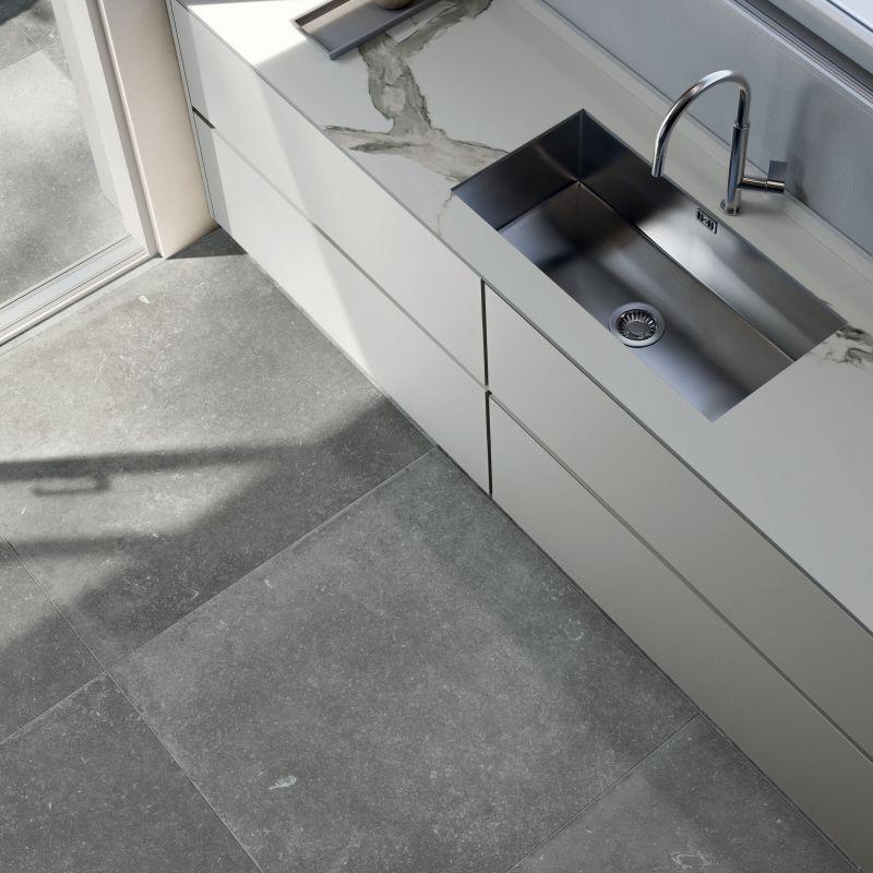 Een natuursteenlook tegel, een betonlook tegel of een houtlook tegel in een neutrale tint, kies hiervoor en u kunt bijna niet de fout in gaan. Elk van deze tegelstijlen zorgt echter voor een andere sfeer in uw keuken. Zo geeft een betonlook vloer een stoere uitstraling aan uw project, een houtlook vloertegel geeft een warmere sfeer en u kiest voor een keramische tegel in een natuursteenlook als u de perfecte basis voor uw keuken zoekt.