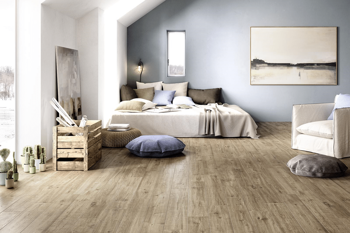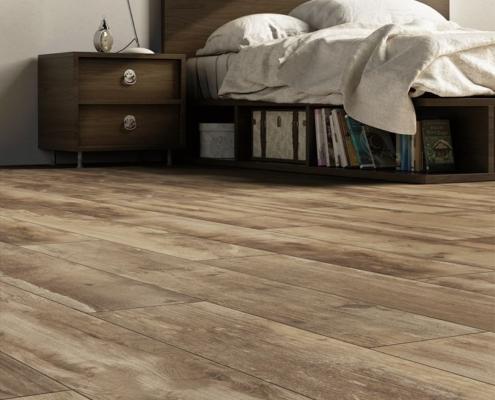 Veel gekozen voor in de slaapkamer is een houten vloer. Het geeft een warme sfeer en creëert een goede basis voor uw ruimte. Een houten vloer vergt echter veel onderhoud en kan verkleuren. Hierover hoeft u zich geen zorgen te maken bij een keramische tegel. Wij bieden verschillende stijlen houtlook tegels aan in verschillende tinten. Zo kunt u kiezen voor de perfecte tegel voor uw project.