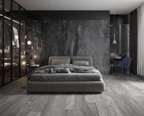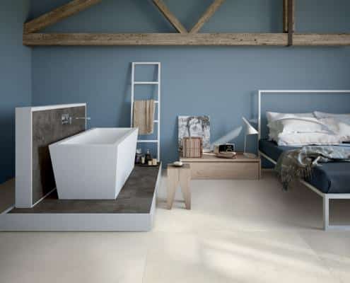 Natuurlijk is het niet voor iedereen de perfecte keuze, een houtlook tegel in de slaapkamer. Maar deze tegelstijl is uiteraard niet de enige optie voor de slaapkamervloer. Zo kunt u bijvoorbeeld ook kiezen voor betonlook. Betonlook tegels maken de laatste jaren een opmars en worden steeds breder toegepast in woningen. Zo wordt er niet alleen voor deze tegelstijl gekozen in de keuken en woonkamer, maar dus ook in de slaapkamer. Het geeft een stoere sfeer aan uw ruimte, welke prachtig aan te vullen is met het meubilair.