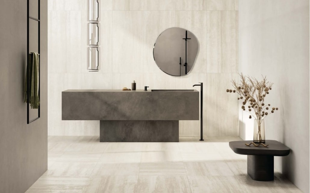 Michel Oprey presenteert met de serie Touch Stone Vein van Coem prachtige natuursteenlook tegels.